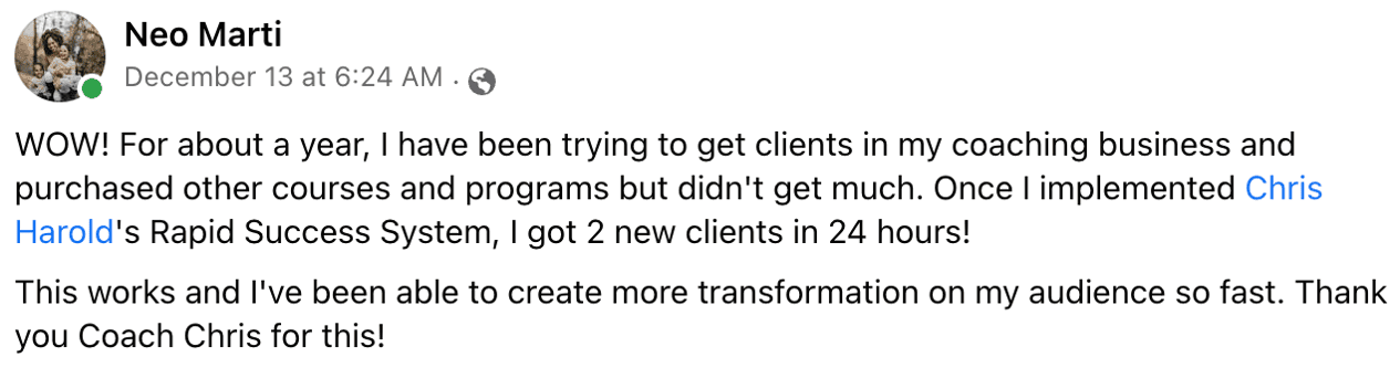 I've also helped other clients and students create 6-figure and multiple 6-figure businesses using my framework.