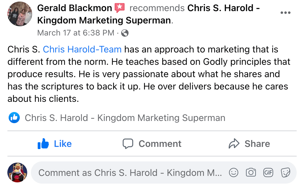 ... Affectionately known as The Sales Coach & Marketing Superman, best-selling Author of Kingdom Affirmations and Founder of God's Masterpiece Rapid Success System where I help coaches, consultants and course creators craft, communicate and close premium value offers faster and better than any coach on the planet.